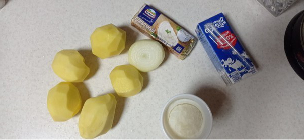 1. Картофель отварить до изнеможения, добавить бульон или кубик, по необходимости добавить воды.