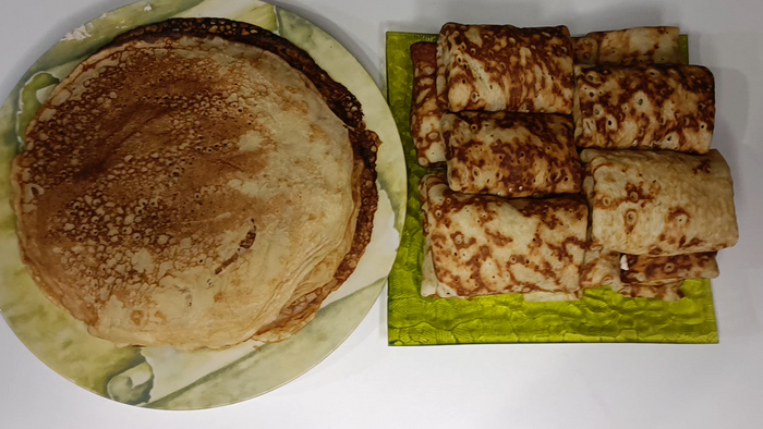 Я подготовила все необходимые ингредиенты для приготовления блинов на сыворотке. Этот рецепт - мой самый любимый, и блины получаются невероятно вкусными. Часть из них, вероятно, сделаю с начинкой.