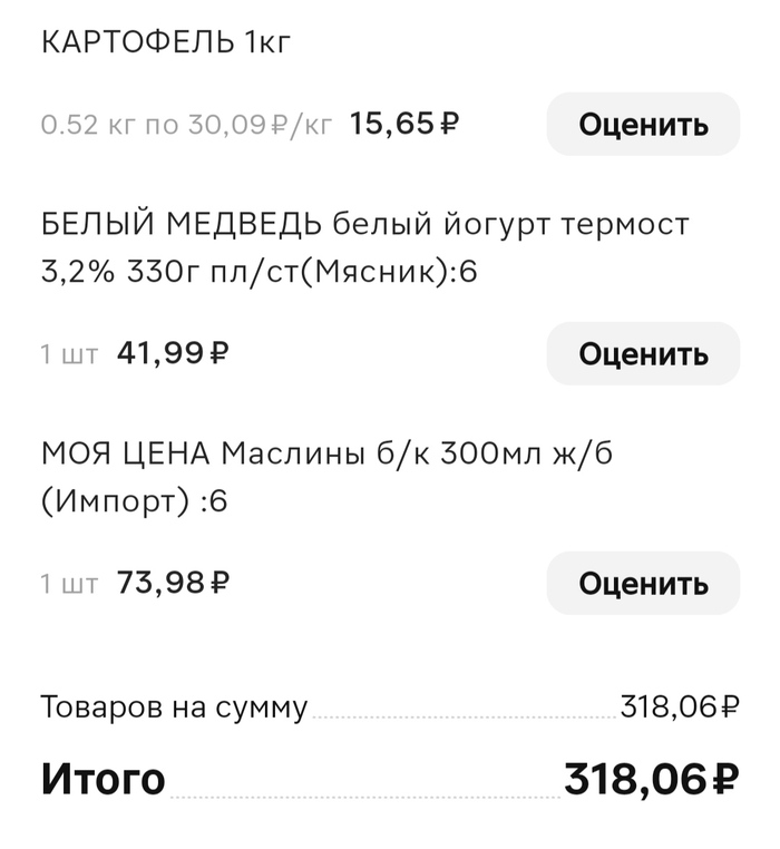 ИТОГО: 370 РУБ! Дороговато. Но, уже деваться некуда. Маслины я буду использовать не все, как и белый йогурт. Он весьма неплохо себя показал в следующем рецепте)