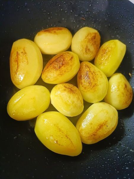 На это же масле обжариваете лук перьями и морковь средним кубиком/полукольцом.возвращаете ребра, добавляете перец, обжаренную отдельно картошку целиком или крупной нарезки, обжариваете ещё 5-7 минут, докидываете нарезанные помидоры, сняв с них шкурку (надо ошпарить, чтоб легко снималось).