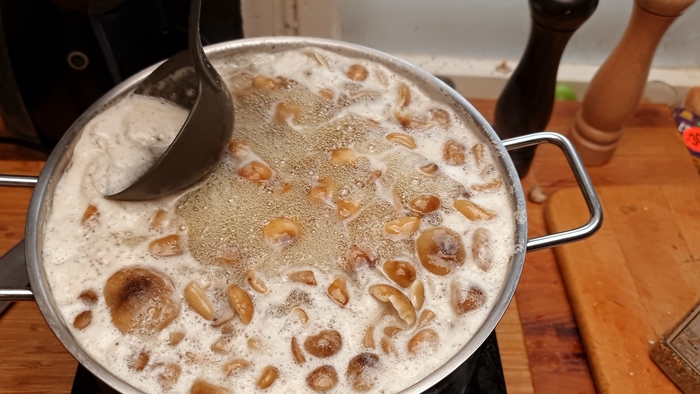 Залить грибным отваром или водой.