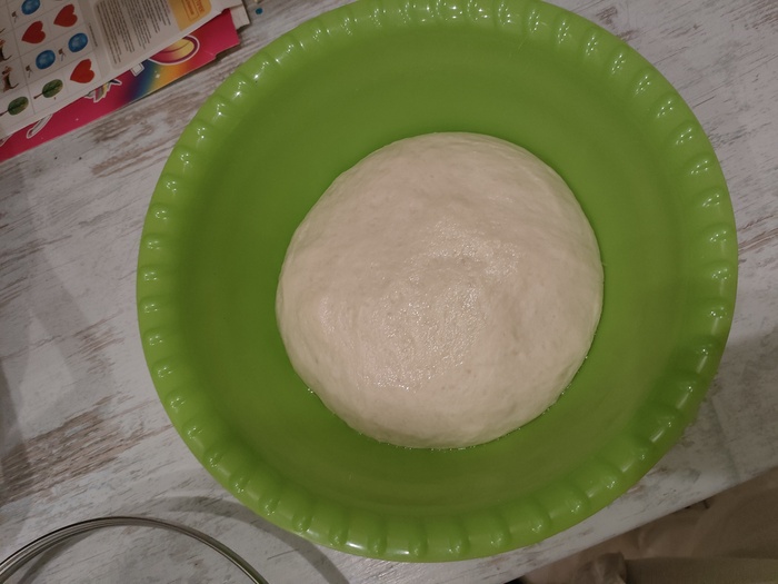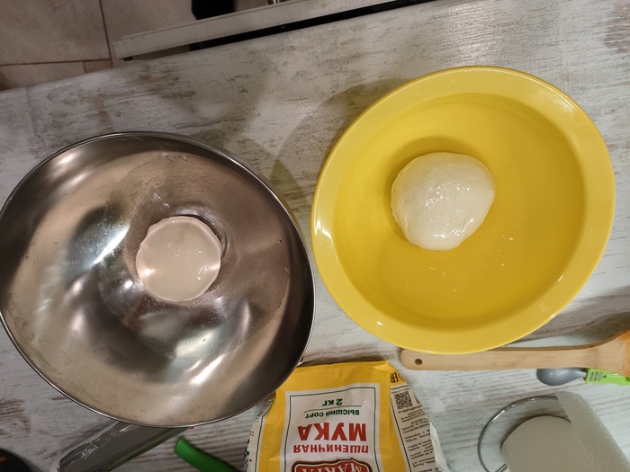 А наш кусочек, так же предварительно скатанный в шарик и положенный в миску, отправляется в духовку с включенной лампочкой на 40-60 мин. Главное не забудьте накрыть крышкой. Было: