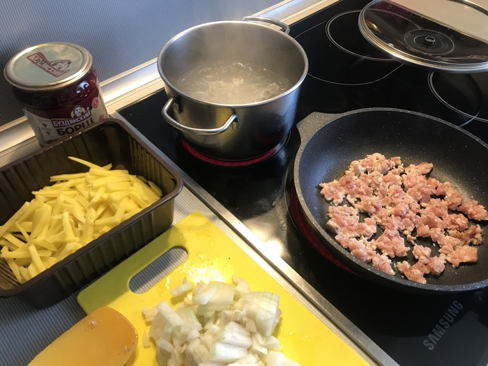 - 70-100гр картофельных чипсов соломкой или жареной картошки/фри