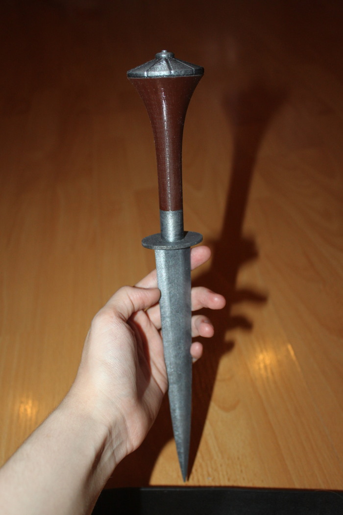 Еще на ремне у нее висит кинжал. Сначала я пыталась сделать его сама из картона, фольги и соленого теста.