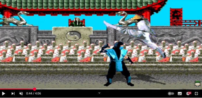 Там, когда играл «турнир», то брал Рэйна (ниндзя в фиолетовой масочке), делал достаточно простой прием (как сейчас помню, «вниз+вправо+какая-то кнопка, «А» вроде), он выпускал голубой шар из рук, который попадал в противника и поднимал его в воздух, позволяя управлять траекторией его полета. Так вот, я перемещал противника в сааамый дальний угол, он падал, бежал на меня, а дальше все по новой. Так можно было дойти до Мотаро и далее до Шао Кана, но увы, этот прием на них не действовал… Но и тут детская логика побеждала – нужно было нанести всего лишь один удар и далее бегать от противников, прижимаясь к краю арены и вовремя перепрыгивая через них, а там и время поединка заканчивалось (¬_¬;)