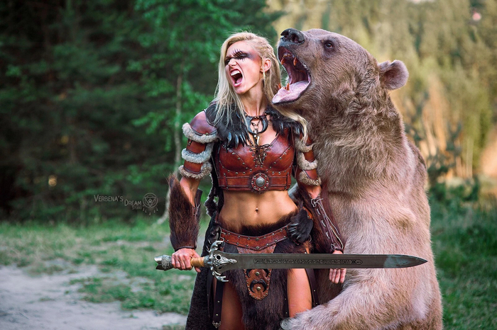 Оригинальная женская версия берсерка с использованием ручного медведя(настоящего).