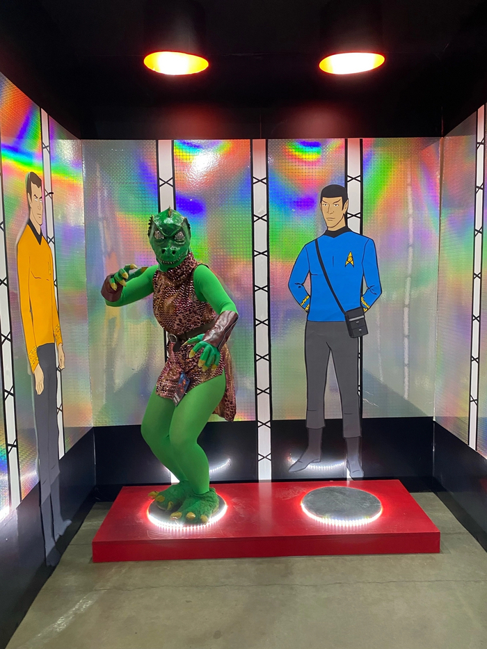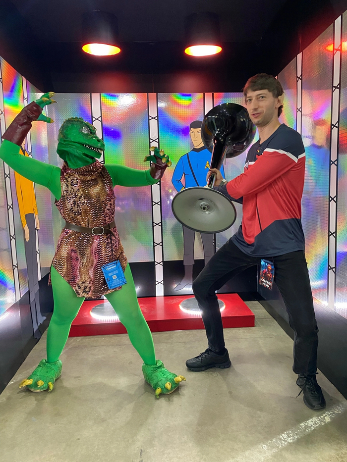 Три года у меня лежал сделанный мной косплей Горна из Star Trek TOS; я в нём пофоткалась, сходила один раз на фест и на этом закончила. Это самый странный и самый яркий из моих костюмов (персонаж научно-фантастического сериала начала 70ых как никак), и я подумала как же ж в нём не спеть. Надо сказать петь я в нём очумела и на последнем куплете чуть сознание не потеряла от жары и нехватки воздуха, да ещё орать приходилось, чтоб звук до микрофона доходил...