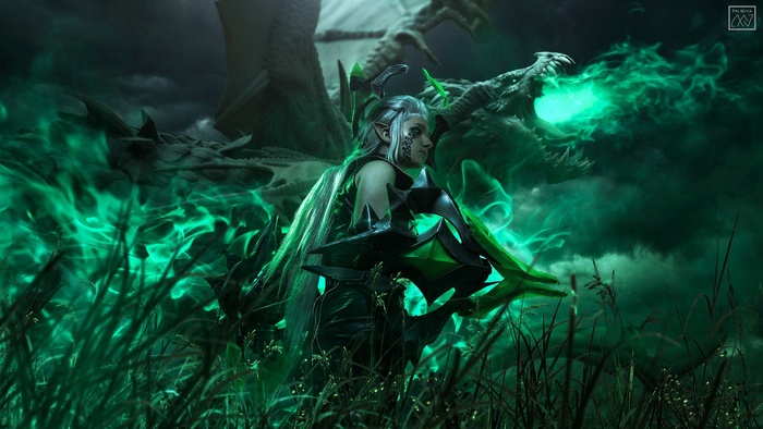 Косплей на Трисс Меригольд из игры "Ведьмак" с использованием настоящего огня