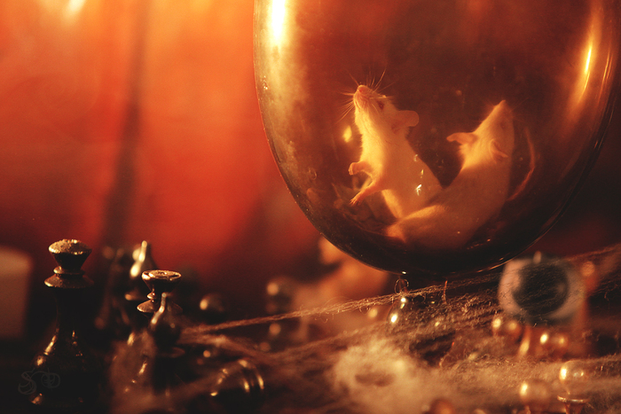 Делаем скидку на то, что это был 2014 год и мы делали подобное впервые: мы реально скрафтили (частично с помощью родителей, в основном они помогали построить стены и стол) в подвале комнату с окном, обоями, занавесками, столом, заваленным хеллоуинским реквизитом. Купили ростовой скелет, свиную голову, говяжье сердце и бог знает что еще. У нас был живой паук, мыши и опарыши. Было сложно, но и повеселились от души)