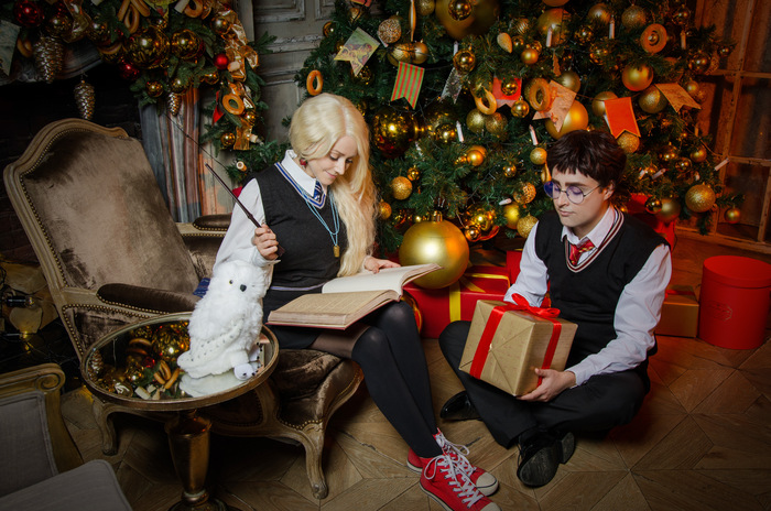Косплей на Гарри Поттера и Полумну Лавгуд. Новогодний вечер в Хогвартсе