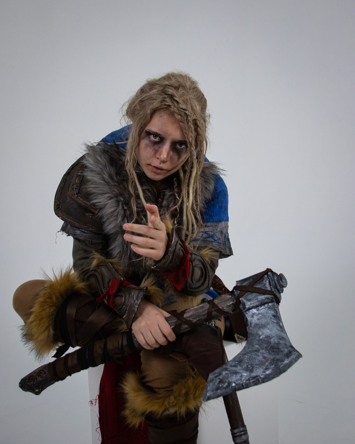 Один топор для красоты(3д печать), второй для постука(ларп), шлем из железа.