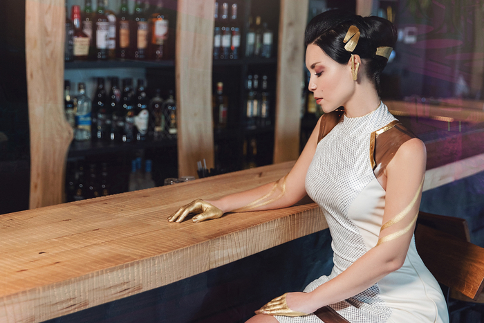 Расскажу о гриме, которого здесь тьма. Благодаря этому косплею я поняла значение чудесного выражения «натянуть глаз на ж…» из известного фильма «Ширли-Мырли». Я, конечно, шучу, но для создания азиатского разреза глаз мы использовали специальные клейкие полоски, которые приклеиваются к веку и сзади под волосами завязываются на резинке. Ощущения такие себе, скажу я Вам.