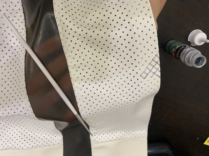 Кожзама с нужным ромбовидным рисунком я не нашла, потому платье пришлось разрисовывать вручную акриловыми красками. Ага, серебристые ромбики сделаны мною ночами. Вот как-то так это выглядело поначалу.