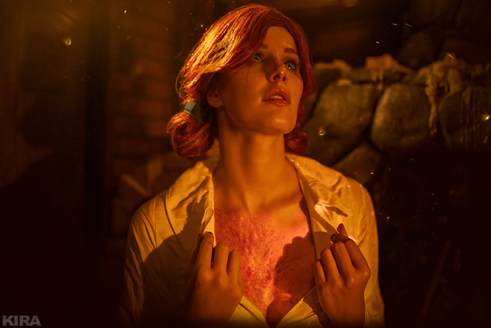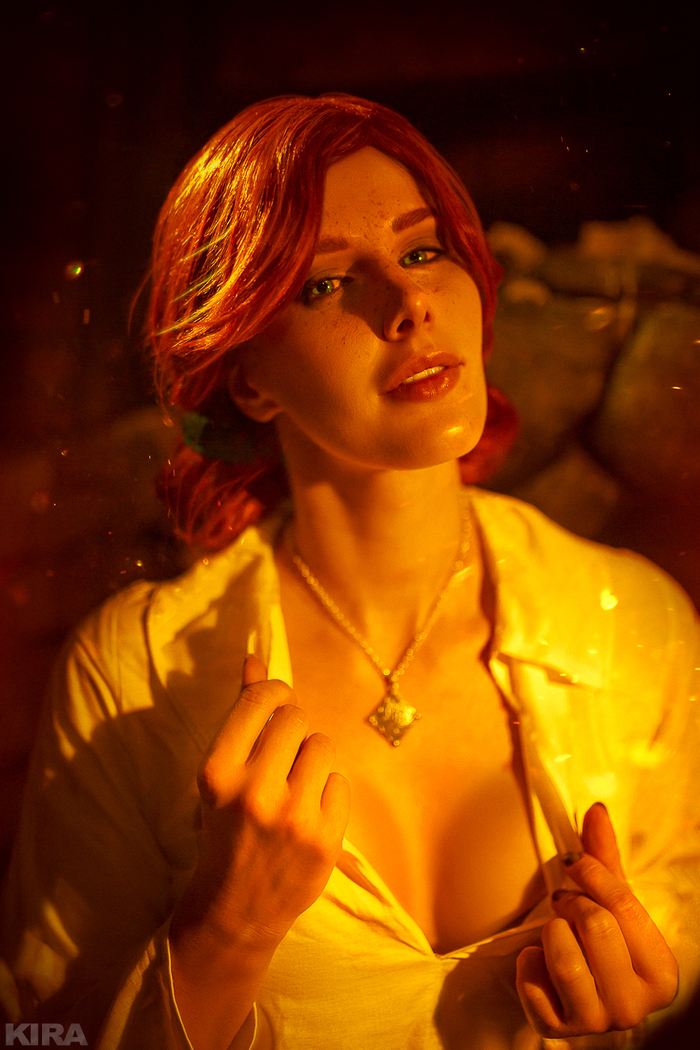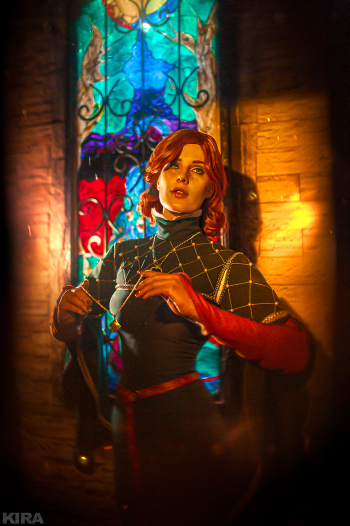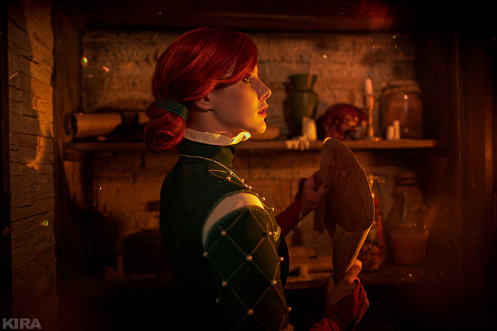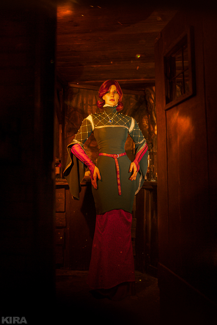 Хотелось бы поделиться фотосетом с образом Трисс, выполненным по известному фанарту, на котором классический костюм чародейки из третьей части игры преобразован в более целомудренное платье, закрывающее столь животрепещущий среди фанатов вопрос.