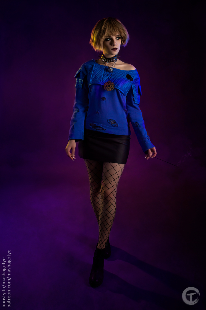 В самом фотосете было решено обыграть упомянутый выше больной вопрос - так был шрам или не был? И куда же он, в таком случае, делся? Включу зануду и скажу, что никакого шрама у Трисс в самой книге не было упомянуто (в отличие от каштановых волос вместо чисто рыжих). Но даже если у Четырнадцатой с Холма остался именно шрам на груди, кто может запретить чародейке спустя годы пересмотреть свое решение и скрыть шрам хотя бы и иллюзией?
