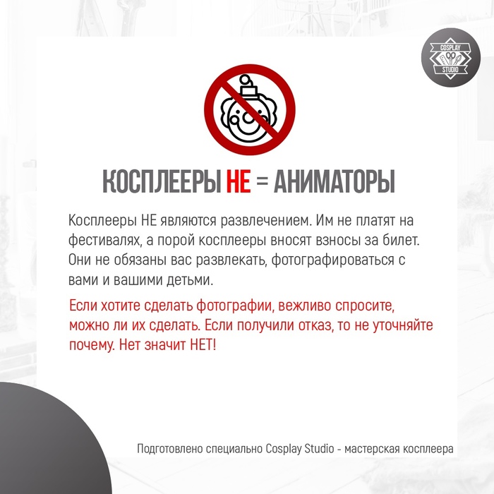 Подготовила для вас информационный пост на очень важную тему "Кем косплееры НЕ являются". Буду благодарна за репосты, лайки и комментарии.