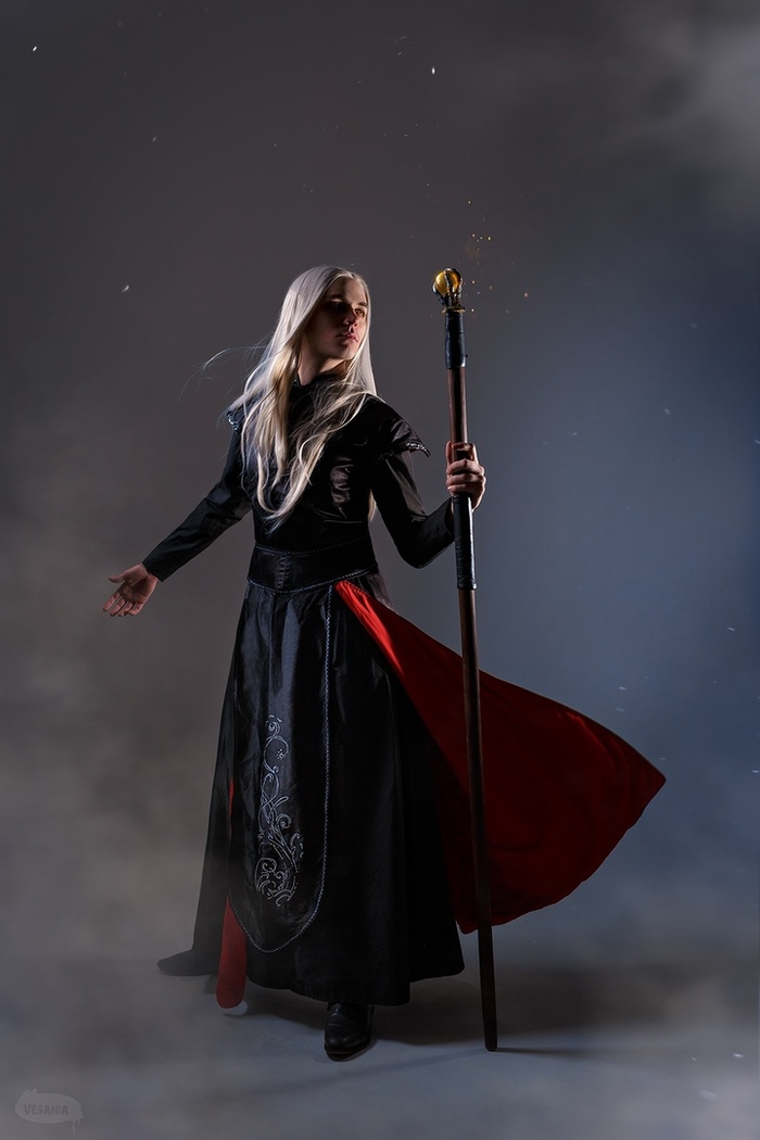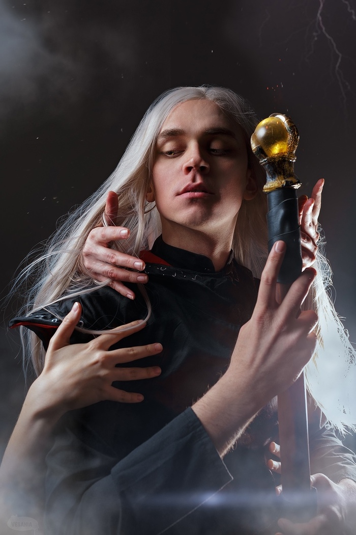 В алхимии серебро — лунный металл, символизирующий более пассивное женское начало, в отличии от солнечного золота. Альбедо — «белое делание», «белый труд» — стадия Великого Делания, в результате которой получается малый эликсир (Aqua Vitae), способный превращать металлы в серебро. Этот же цвет я использовала в костюме Рейстлина, связав образы общим мотивом — очищения, трансформации, незавершённости.