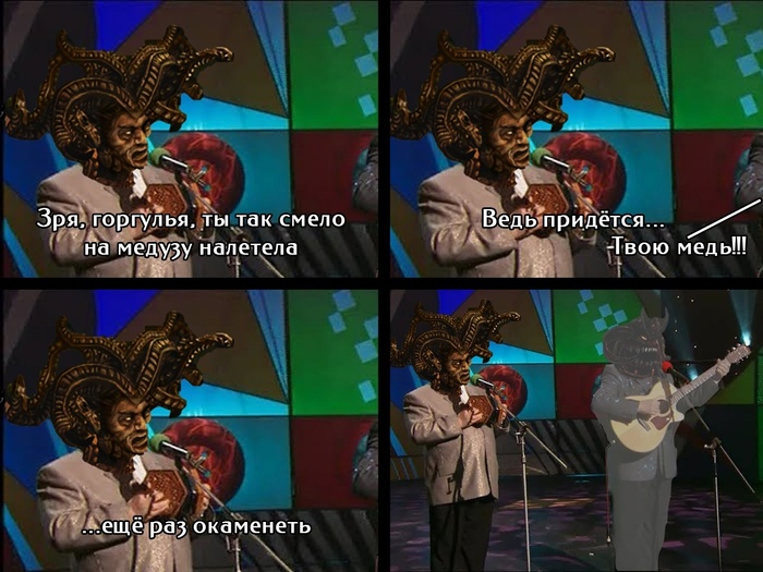 Задумка была в том, что тролль испольузет различные куски чужого вооружения и брони. Даже крышу от тарана нацепил.