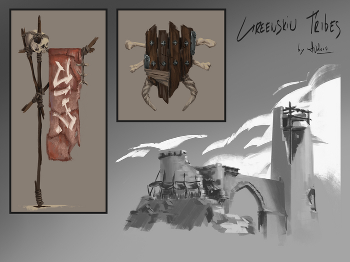 Начнем с концепт-арта. По нашей задумке один из высокоуровневых юнитов ветки поддержки Племен зеленокожих будет троллем, который использует в качестве оружия ничто иное, как таран! Вы можете увидеть, как менялся образ в процессе проработки деталей и что мы использовали, как референсы.
