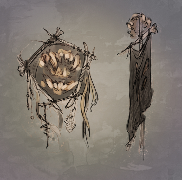 Задумка была в том, что тролль испольузет различные куски чужого вооружения и брони. Даже крышу от тарана нацепил.