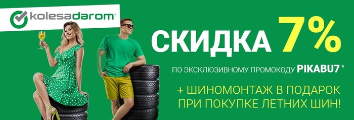Еще больше скидок и акций для Колеса Даром смотрите в разделе Промокоды Пикабу.