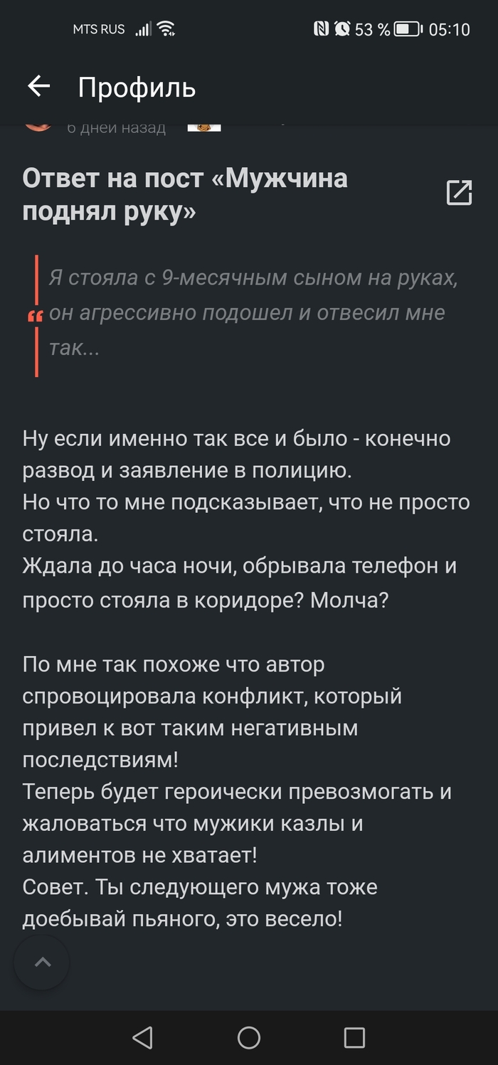 Ребят, этот ответ на пост очень зацепил. Ответ на пост «Мою маму избили»