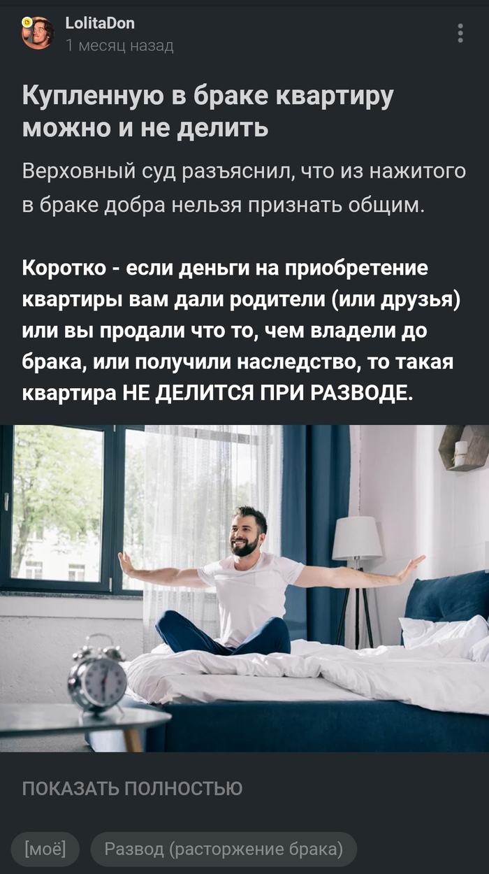 Автор поделиться с пикабушником как не делить имущества. Спойлер, он ещё не раз об этом напишет в комментариях. И он умный, он себя обезопасил, как он нам поведает чуть позже.