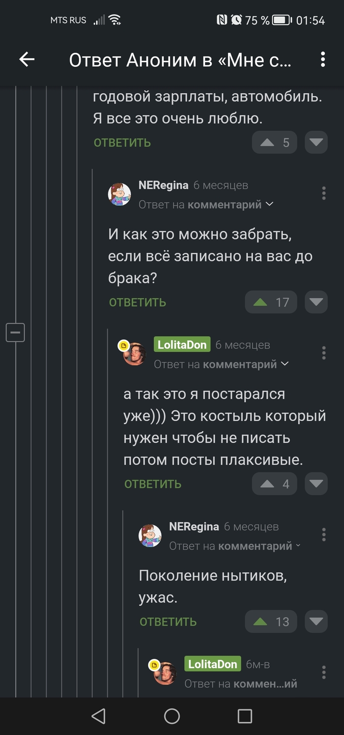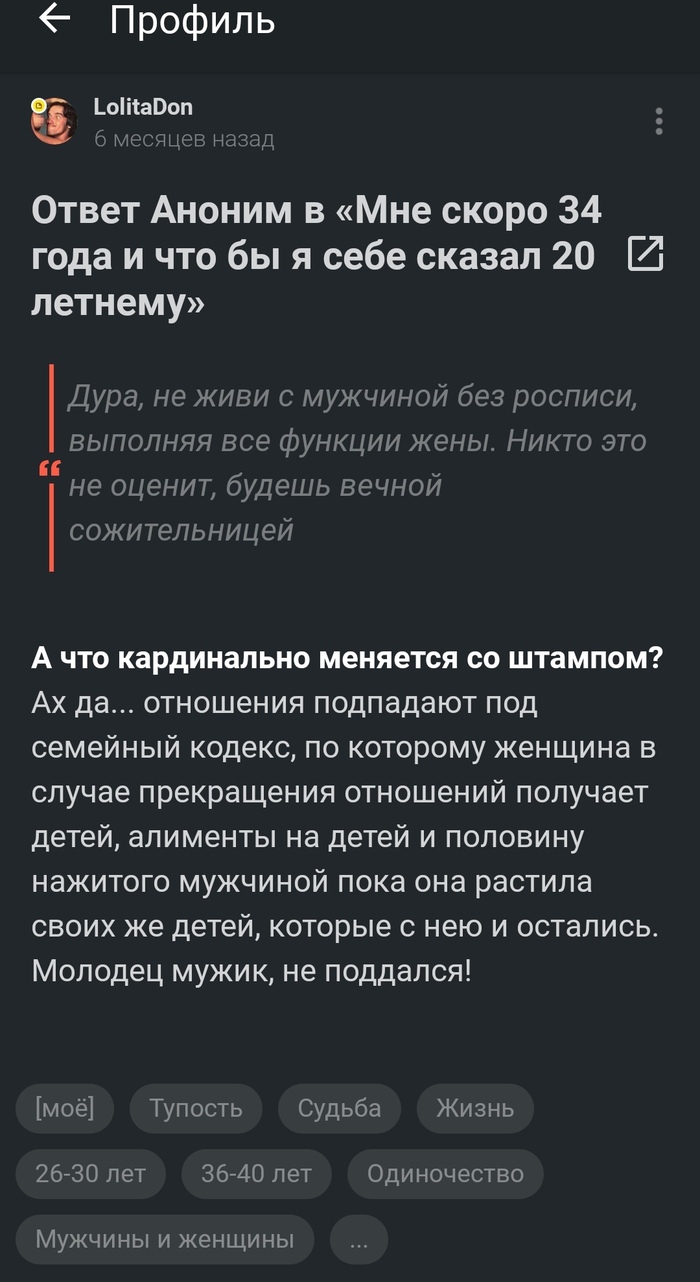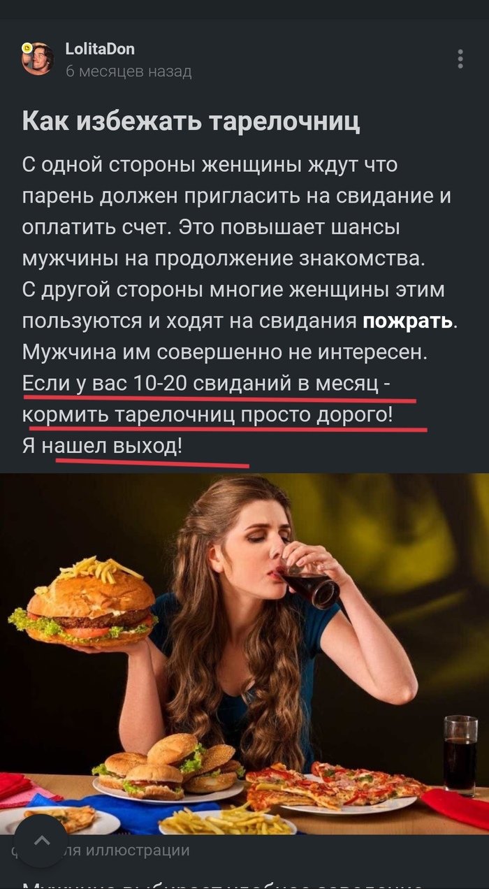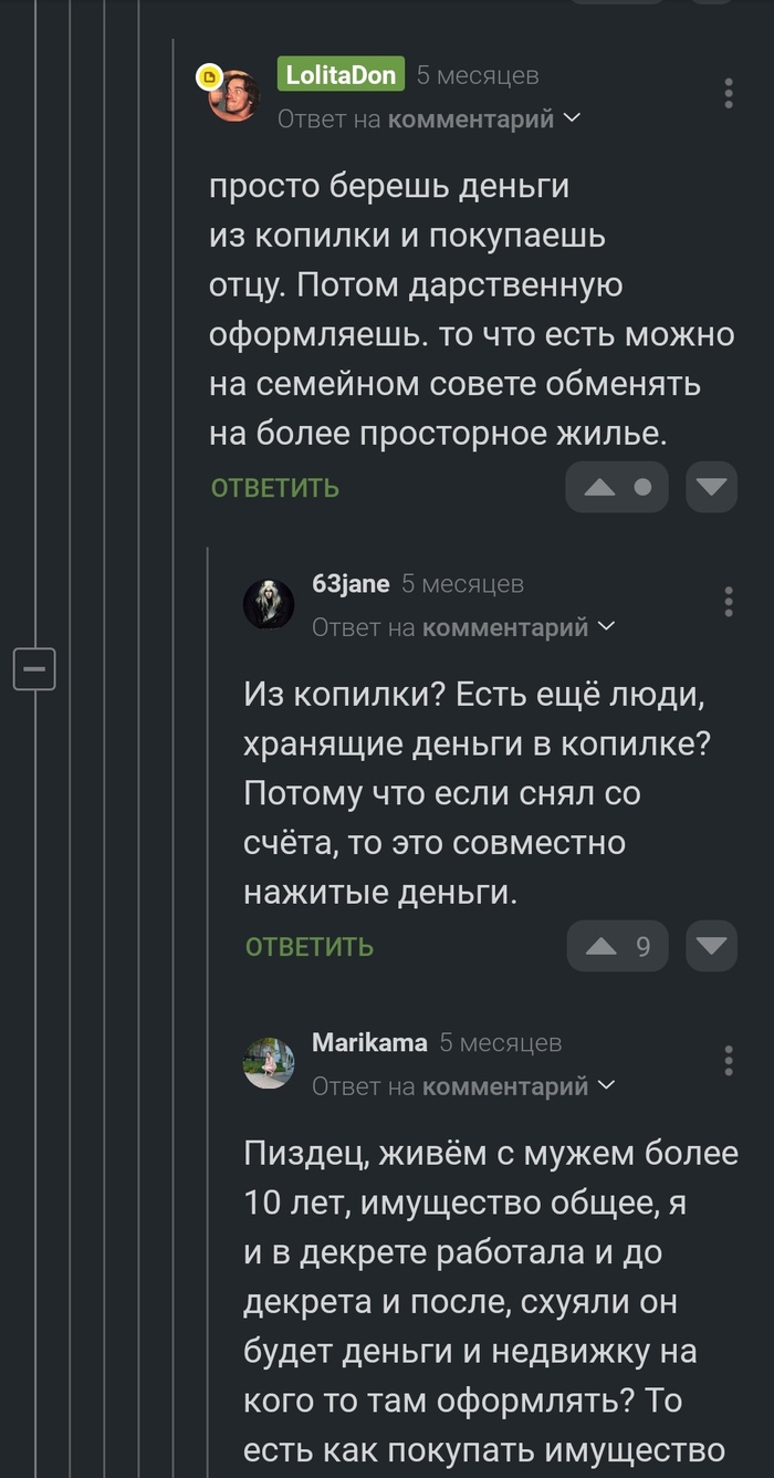 И ведь действительно, @LolitaDon рассказывает о там какие женщины меркантильные, тарелочницы и вообще люди так себе. Но сам то я жене ничего не отдам, все моё!