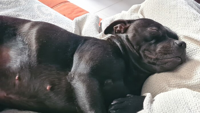 Сьездили, забрали, спасибо сказали, помыли, и теперь этот усталый, но оооочень довольный дебил отсыпаается на диване, гавкая и суча ножками во сне.