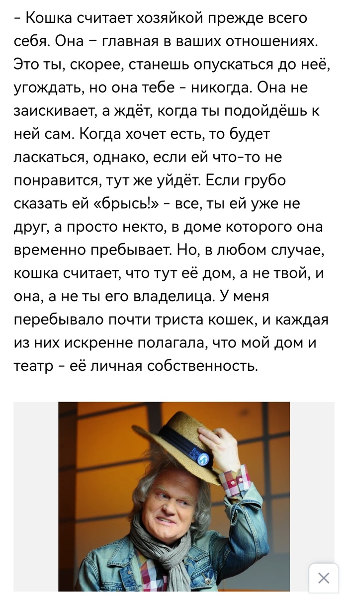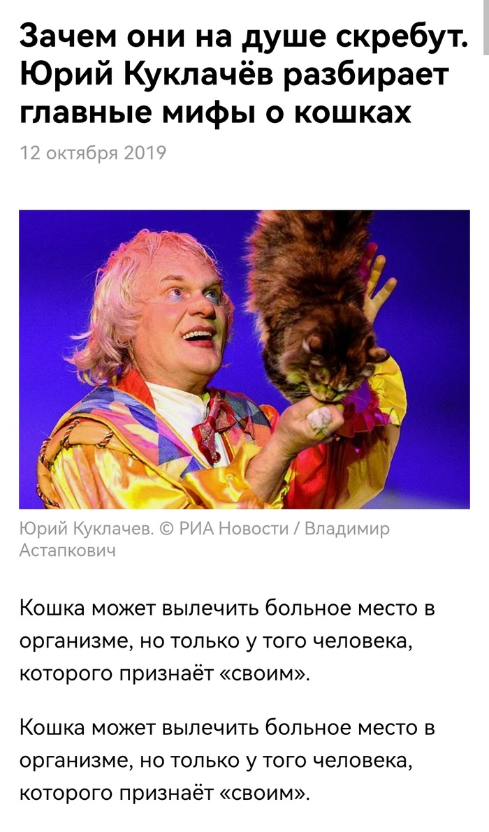 Ниже о кошках от Куклачёва.
