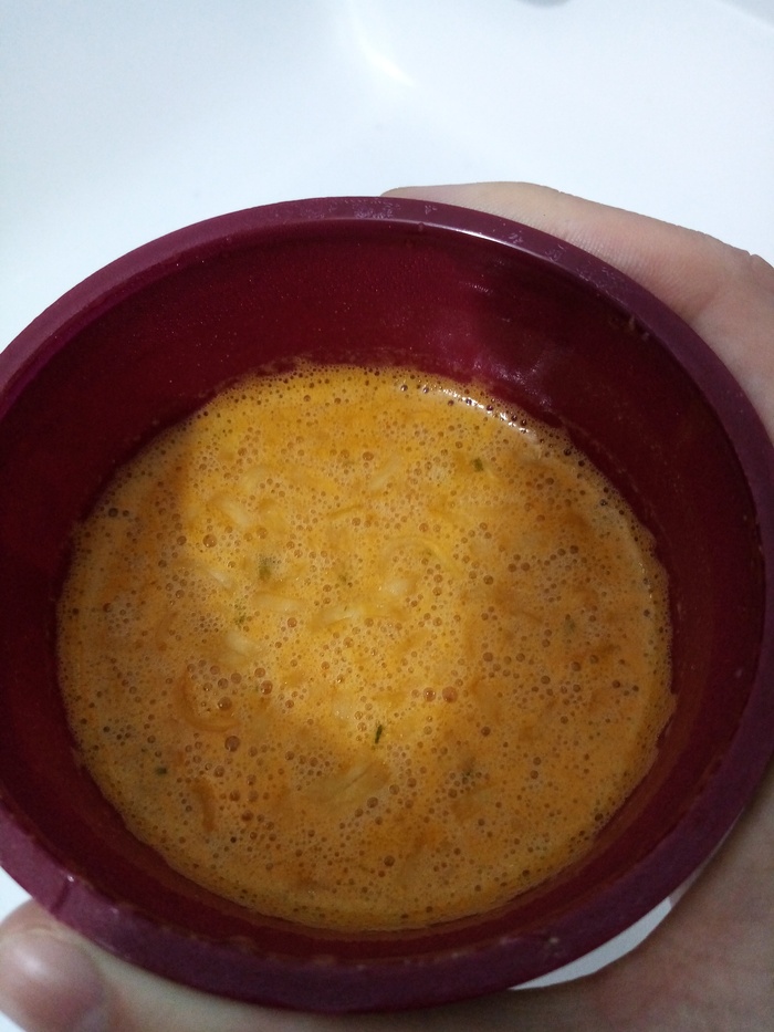 Вот в такой картонной упаковке находится стакан с замороженным супом для приготовления в микроволновке.