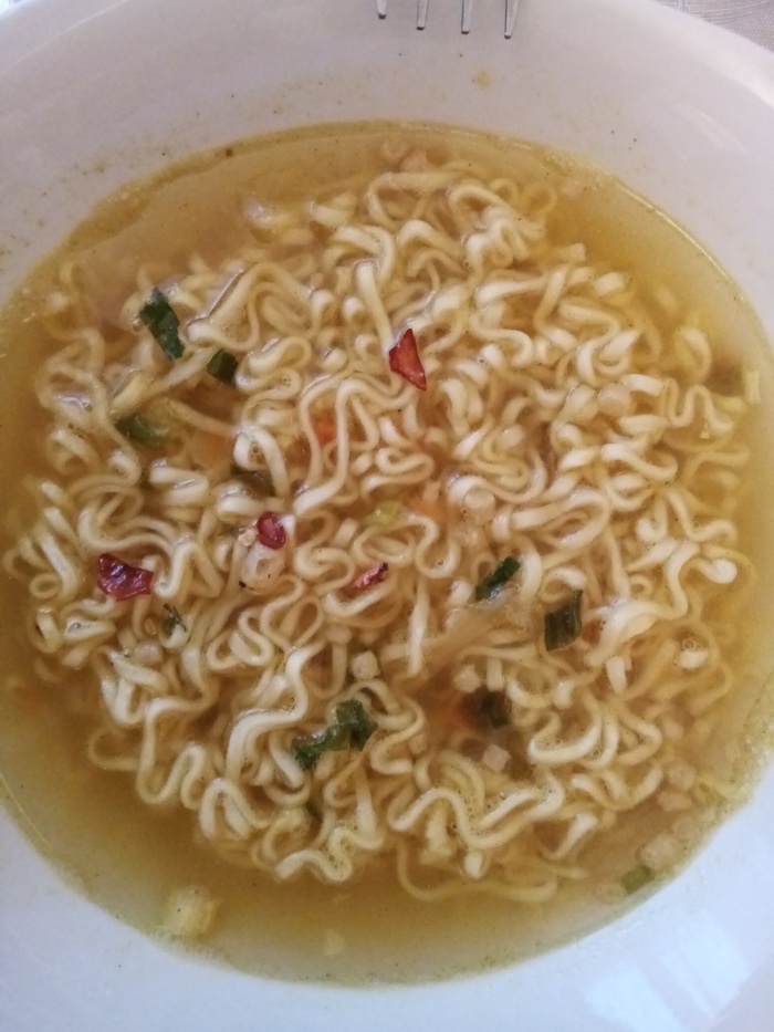 Лапша тонкая, средней упругости. Вкус - ммм... :) Пряный-пряный, как большинство чисто китайских раменов. Хоть и сказали мне, что тут только овощи, но я таки ощущаю привкус мяса. Похожа на лапшу от Kang Shi Fu, которая мне нравится, только пряности побольше. Острота - примерно 3-4 островатта**.