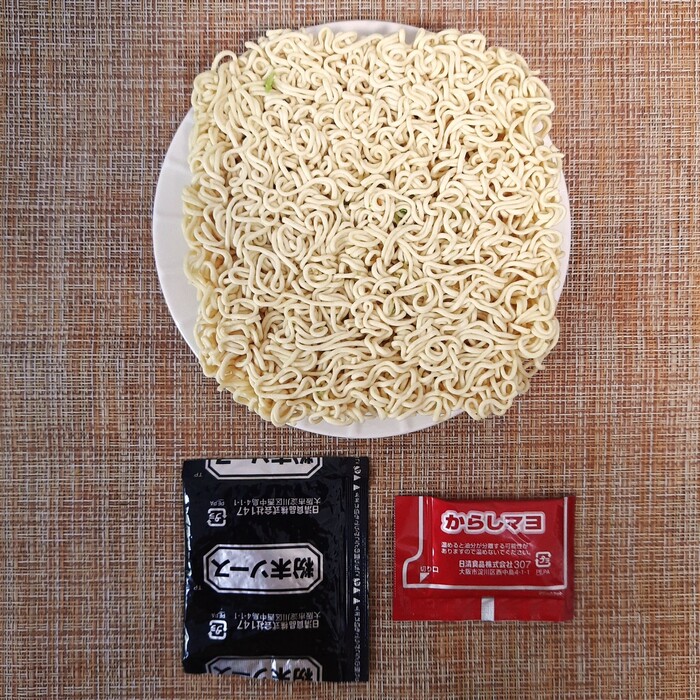 Привет, друзья! На этой неделе удалось прикупить несколько очень интересных образцов лапши по вменяемой цене на Wildberries. Я обязательно расскажу вам обо всех, а сегодня на дегустацию отправится первый из них, наиболее заинтересовавший меня. Имя ему Якисоба в овощном соусе с майонезом. Достался он мне по совершенно замечательной цене в 298 рублей за 2 упаковки. Произведен наш сегодняшний подопытный в Японии, что не может не радовать. Наконец-то попробую настоящий японский Nissin. Упаковка большая, почти квадратная. Обтянута сверху яркой красной пленкой. Надписи на упаковке на японском языке. Имеется русскоязычный стикер.