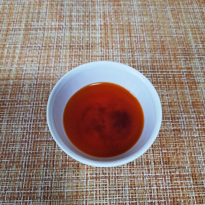 В следующем пакете находится масло чили. Ярко-красное. Без запаха, но остренькое.