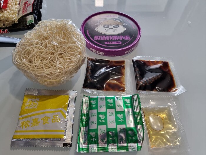 4) Белесая лапша, которая после контакта с кипятком должна стать прозрачной.