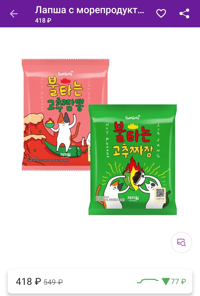 Упаковка большая, красивая, с котиками. Все как мы любим. Надписи на упаковке обещают нам экстремальную остроту. Приобретена сия лапшичка была в составе вот такого замечательного набора за 286 рублей на Wildberries. На сегодняшний день цена, к сожалению, значительно выросла.