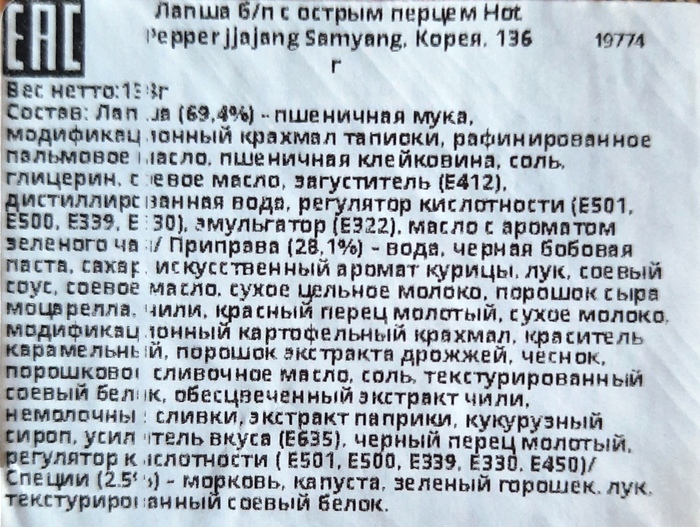Куплено в Питере, в "Красном драконе", за 54 рубля 87 копеек. Дата покупки - 11.11.2021. Судя по всему, меня ждёт лапша со вкусом острой говядины. Есть наклейка на русском языке: