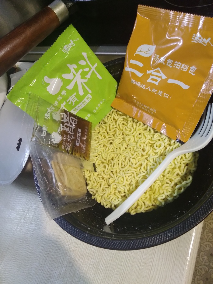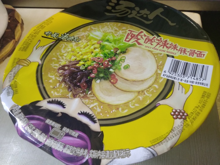 Удивлён что соевое мясо почти не взбухло. Но азиаты каждый раз чем нибудь удивляют. Сама лапша приятная,я ее называю резиновая, хотя мой знакомый русско-китаец утверждает что она самая вредная,так как содержит много химии в составе.Больон шикарный,насыщенный ,только по вкусу не похож на свинину (лапша вроде со вкусом именно свинины). Любителям острого не подойдёт, уровень куриного дошика. В целом доволен покупкой и в следующий раз куплю еще  такую,так как цена очень приятная (130р) и вкусовые качества на высоте. Завершая,хочу задать вопрос -  может кто в курсе зачем делают такую плотную упаковку? Она неверно выдержит вес человека в 70 кг.