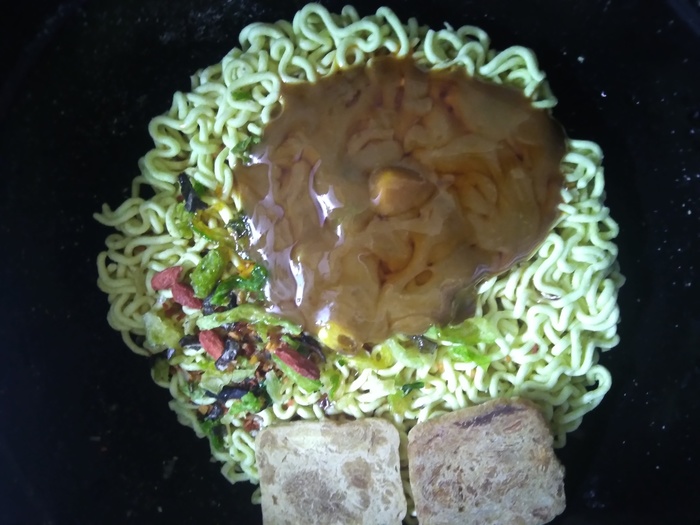 Вам, конечно же, знакомо это ощущение надвигающегося звездеца после первых двух "ложек" этой лапши. Вот и я, укус за укусом, томно ожидаю страстное танго сковиллей в своем рту... Но стоп, что такое... Еще ложка. Еще. А пожара так и нет...