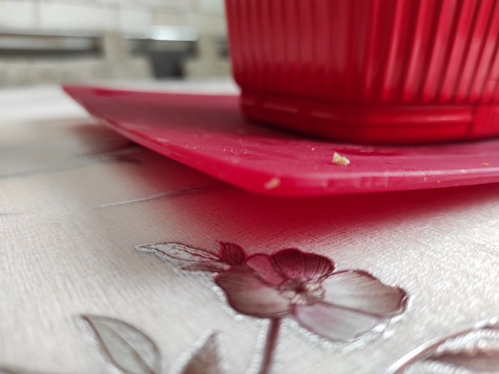 Кстати, контейнер ОБЯЗАТЕЛЬНО надо поставить на что-то, иначе скатерть будет "убита". Да даже моя доска была в шоке от того что творилось внутри посуды!