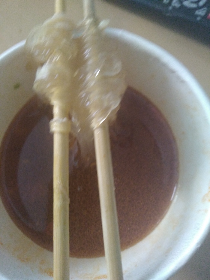 Заварил лапшу в микроволновке чтобы не парить достаточно ли нагрел или нет. Там и там понадобилось по четыре минуты. Пресловутый "кусочек чего-то" виден, на вкус прям мясо лишь напоминает. Но без придирок вполне приятный бульон, с отчётливым ароматом положенных для фо специй. Хотя есть ли именно говяжий запах загадка похлеще чёрной дыры. На вкус приятно, но конечно до фо на варящемся несколько часов бульоне этой штуке далековато.
