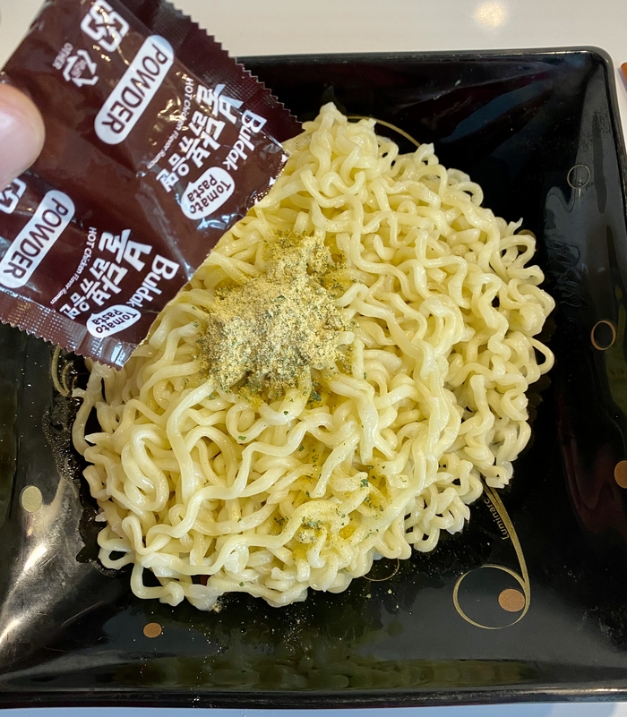 Я заметил, что после добавления сыра цвет блюда стал более жёлтым, наверное в порошковой приправе был не только сыр, но и куркума. Аромат лапши нельзя назвать выразительным, пахнет томатным соусом, но без всяких оттенков базилика или орегано. Пробую. Мда, такой подставы от японской лапши я не ожидал. Сначала я подумал, что мне показалось, но съев половину, осознал что не показалось. Эта лапша откровенное фуфло. Чтобы понять, что я купил за 150 кровно заработанных рублей, возьмите Роллтон (44 рубля.90 г.), заварите без приправ, слейте воду и плюхните столовую ложку кетчупа Михеев Чили (65 рублей 300 г.). Будет один в один эта японская попытка в итальянские спагетти. Сыр можно было и не сыпать, всё равно его здесь не чувствуется. Уровень остроты? Всё тот же Махеев Чили. Отстой.