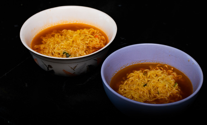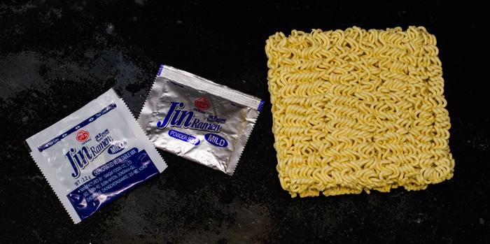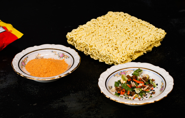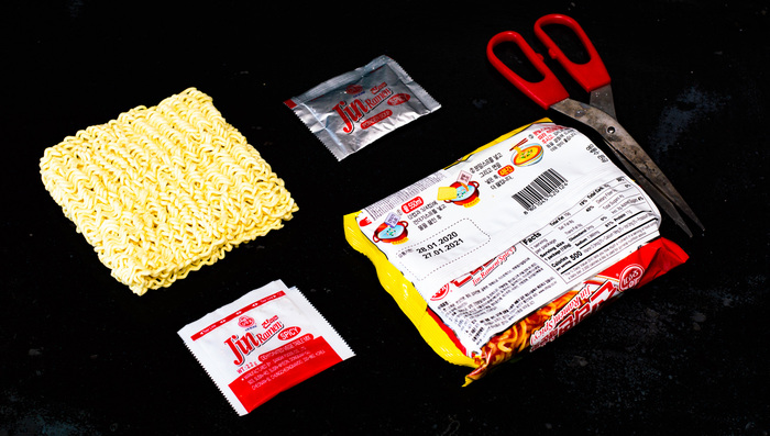 На всякий случай ещё раз посмотрим. Да, лапша обычная для дошираковской серии "чан рамён", пакет с соусом один и герметично запечатан.