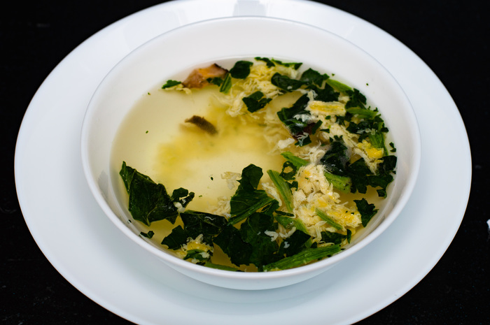 Шпинат - в наличии. Яйцо - в наличии. Шиитаке - в наличии. И за счёт горячей воды, суп даже дарит какое-то чувство насыщения, впрочем мимолётное.