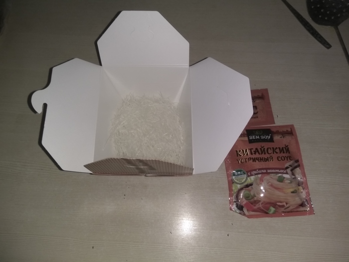Сразу говорю, в посте будет вторая попытка поужинать, так как в первую даже не думал выкладывать сюда) Да и кое-чего явно не хватало в базовой комплектации) Вот так всё это выглядит в распечатанном виде - вермишель из бобовой муки, устричный соус, (где там устрицы, в содержимом я так и не нашёл) пакетик с измельчённым арахисом и... Всё