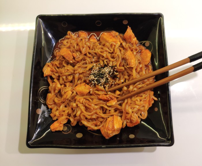 Буквально на днях, в комментариях к посту моего коллеги по цеху @Naugolnik, я обмолвился что мол нужно запилить свой пост про то, что если постоянно есть острые дошики со временем они уже не кажутся острыми и приходиться повышать их остроту самостоятельно. Сегодня попробую проделать это с широко известной в узких кругах лапшой Samyang Hot Сhicken Flavor Ramen.