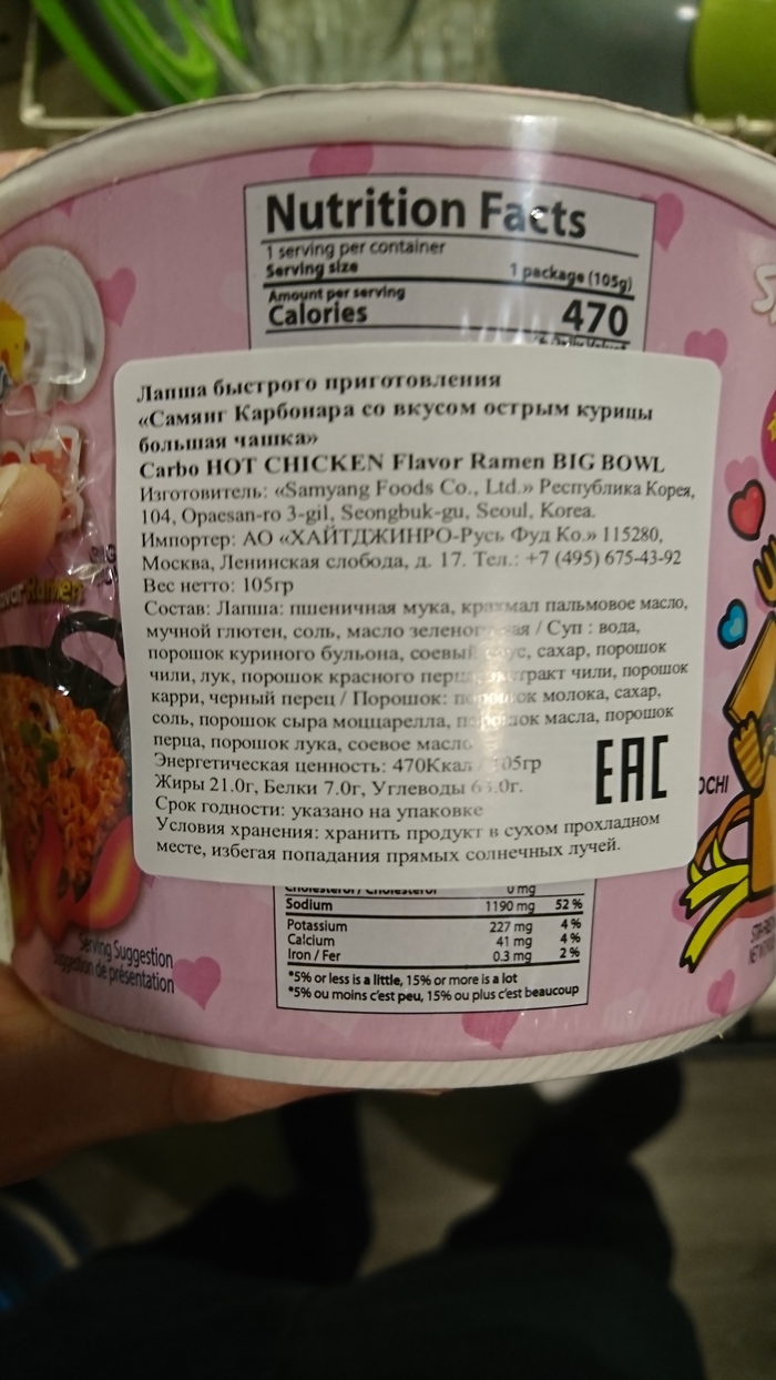Доширакология. Samyang Hot Сhicken Flavor Ramen Карбонара со вкусом острым курицы