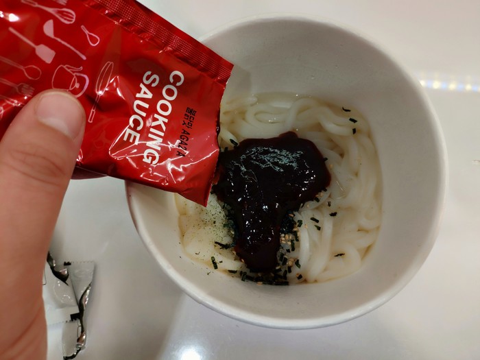 В лучших традициях безответственного отношения к размерам Тихоокеанского Мусорного Пятна лапша упакована в пластиковую обёртку, которую надо разрезать и снять, прежде чем открывать собственно крышечку.
