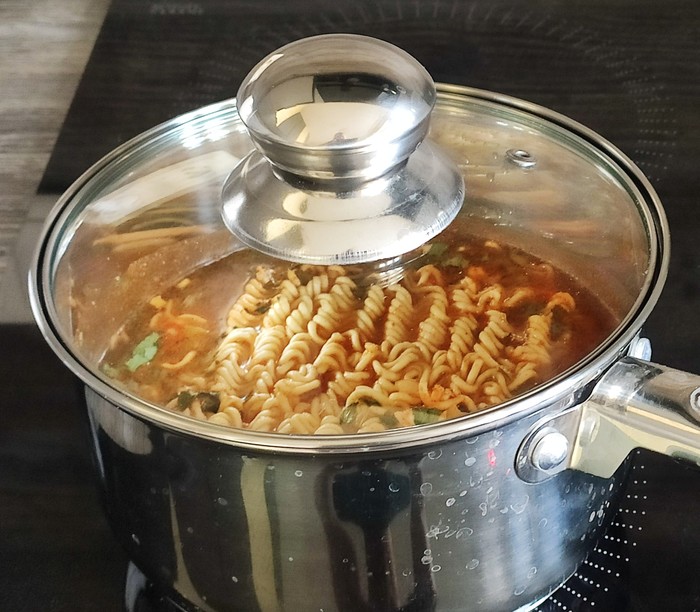 Ближе к середине тарелки во вкусе проступают какие-то сливочно-креветочные нотки. Это не то, что ожидаешь от лапши со вкусом яичницы.