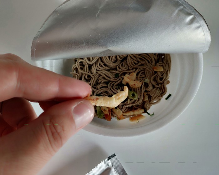 Тут же перед нами обыкновенная европейско-вкусовая лапша быстрого приготовления. По крайней мере, такое впечатление оставляет разведка носом.